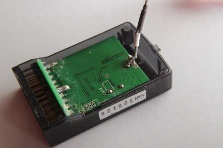 Als erstes musste ich das Gehäuse der Fernsteuerung, sowie des Moduls aufschrauben und das graue Koaxialkabel ablöten.