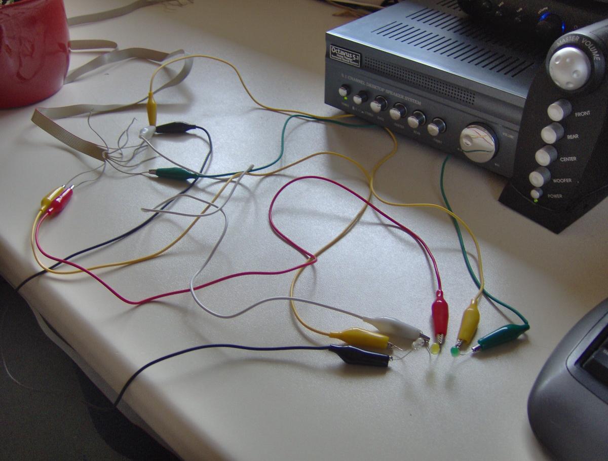 Dann an die Enden des Flachbandkabels n paar Krokoklemmen mit LED´s dran und testen.