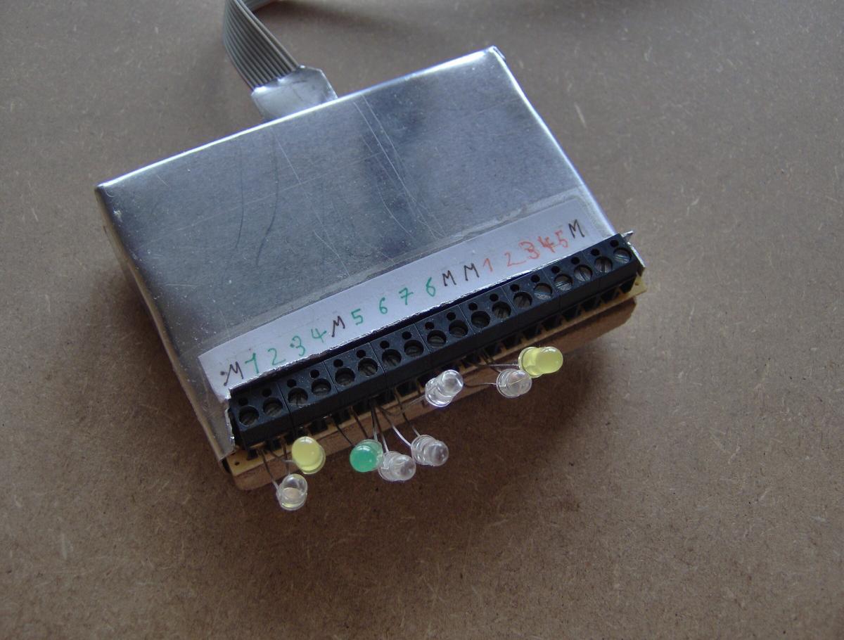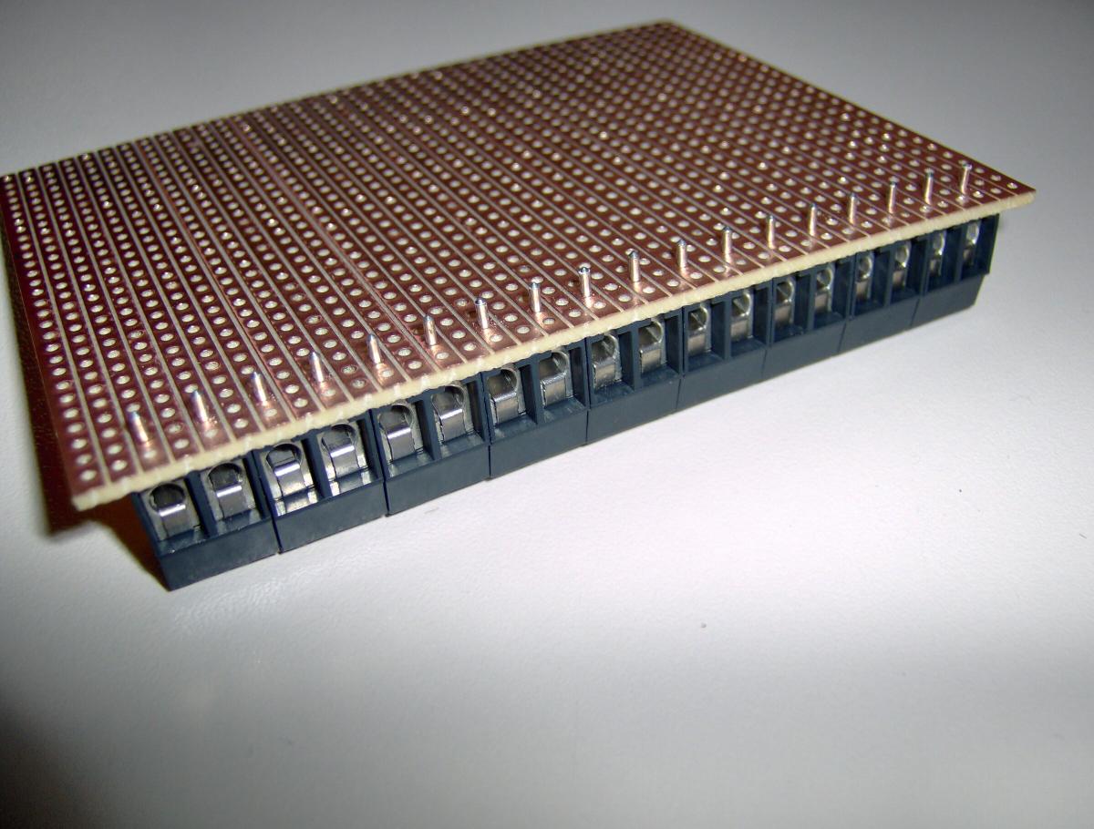 ich mich dazu überwunden, die 5 Ein- und 8 Ausgänge (+ einige Massen) auf einer Platine mit Schraubklemmen zu verbinden.