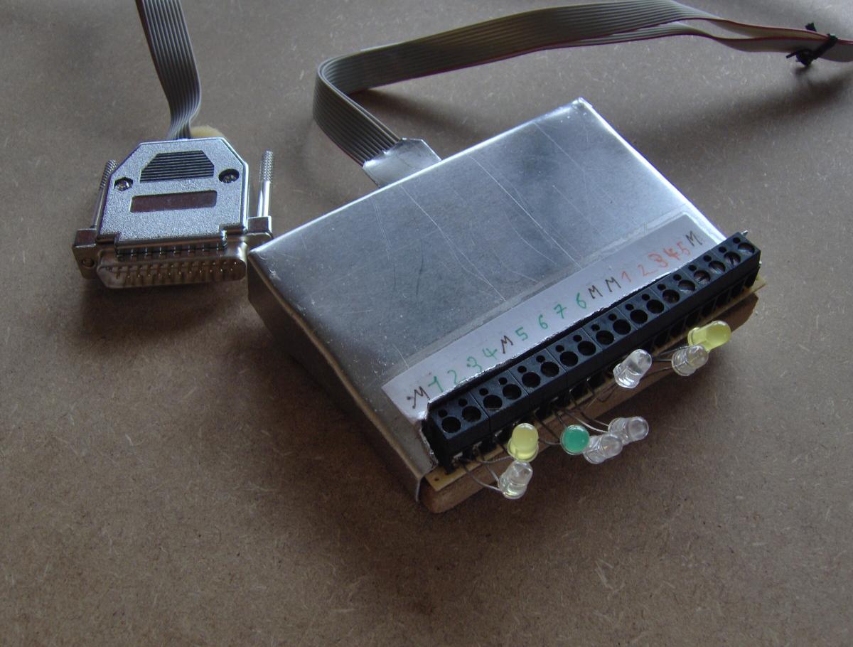 An die Schraubklemmen kann nun alles mögliche angeschlossen werden, was man über den LPT-Port steuern will.
