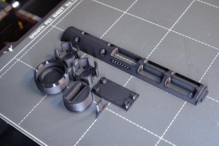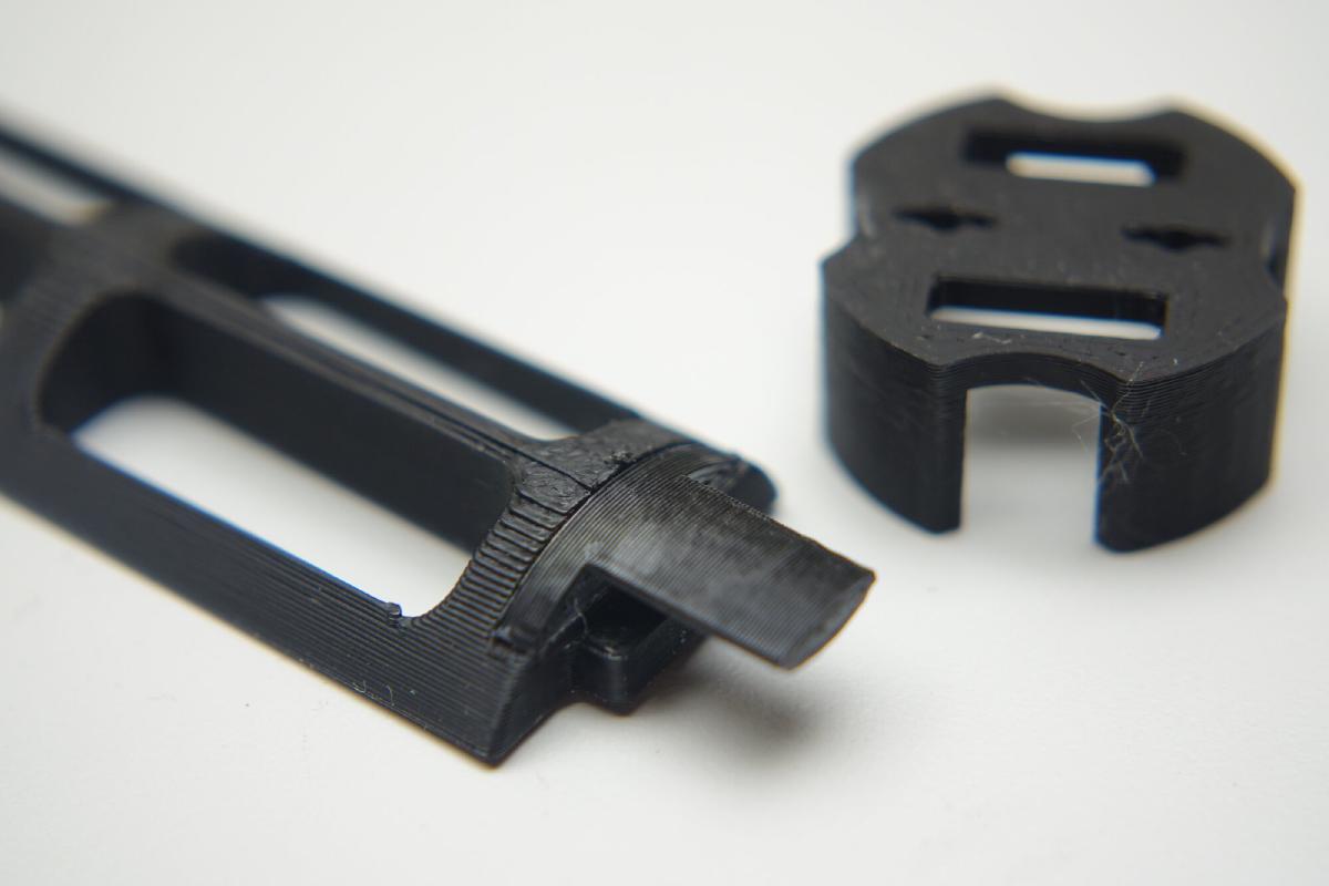 Um Sützstrukturen zu vermeiden besteht der Druck aus mehreren Einzelteilen, die zusammengesteckt werden und sich in axialer Richtung nicht im Rohr voneinander lösen sollten.