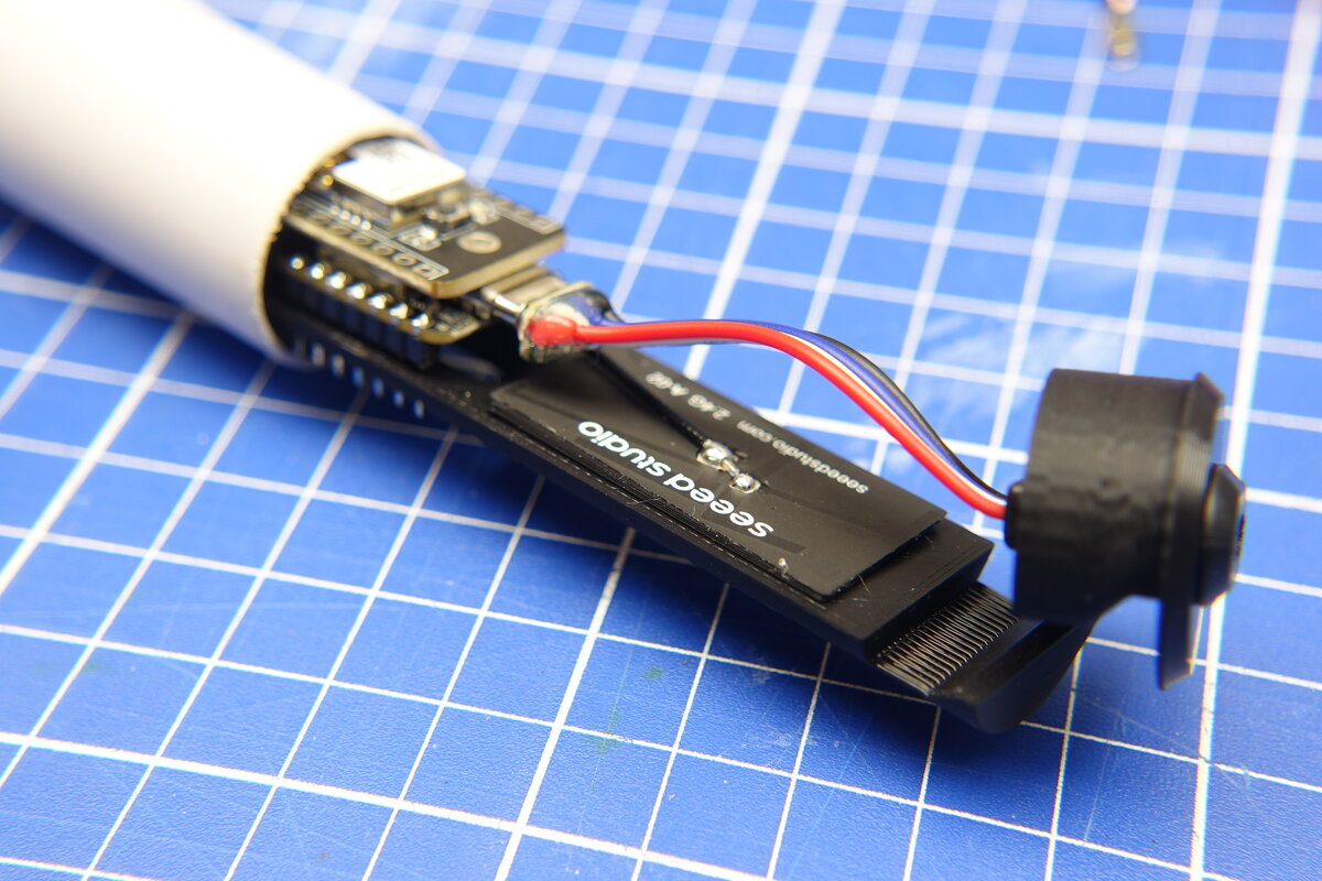 Da leitende Objekte in der Nähe der J-Pole Antenne die Abstimmung stören musste die PCB Antenne für Bluetooth und WLan auf die andere Seite des XIAO Boards. WiFi Empfang ist schon irgendwie ausreichend, daher sind die paar USB Strippen über der 2,4 GHz Antenne auch egal.