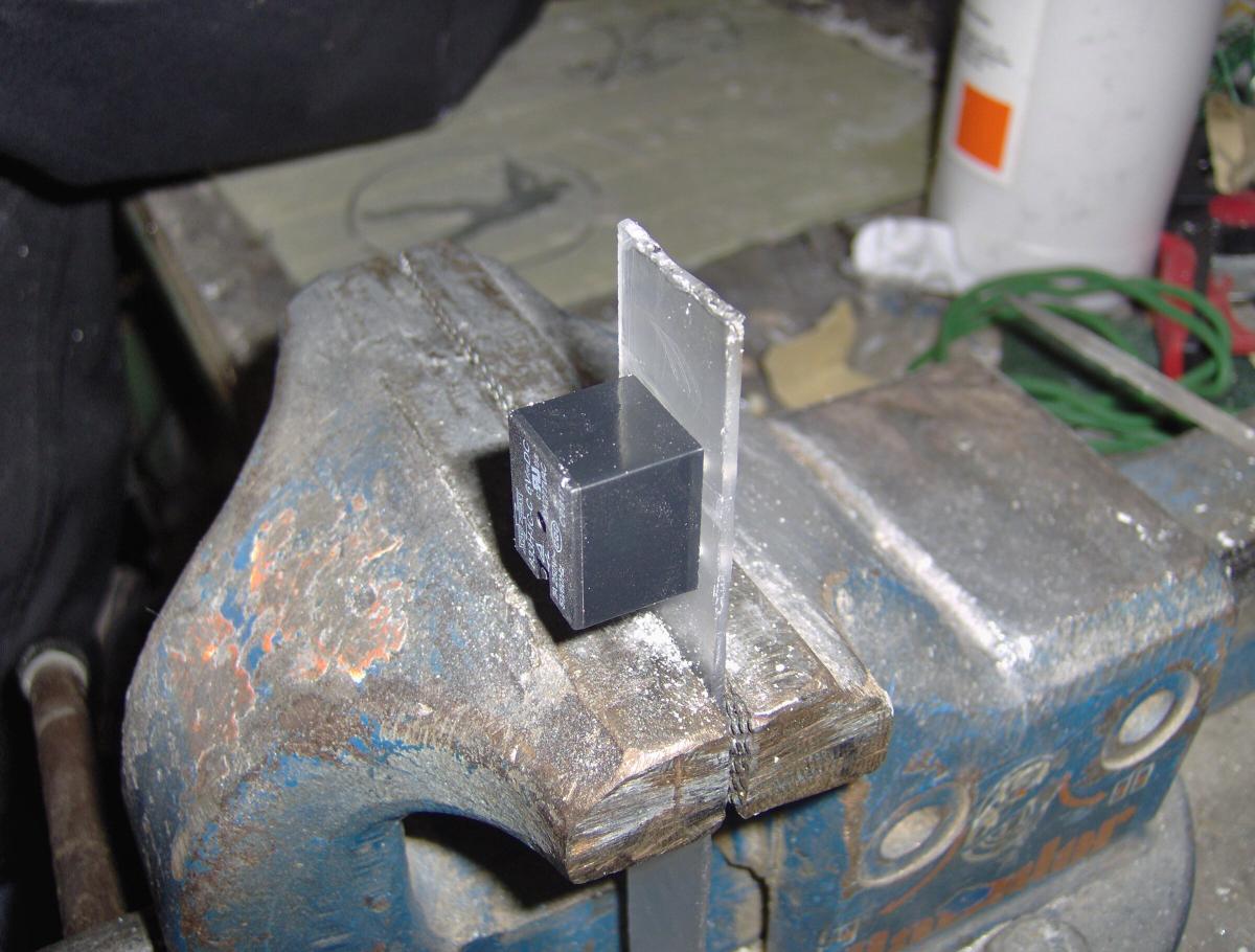 Hier sieht man wie ich einen erhitzen Draht durch das Plexiglas gedrückt hab. Den Draht (von einer Büroklammer) kann man sehr gut mit einem kleinen Gasbrenner erhitzen.