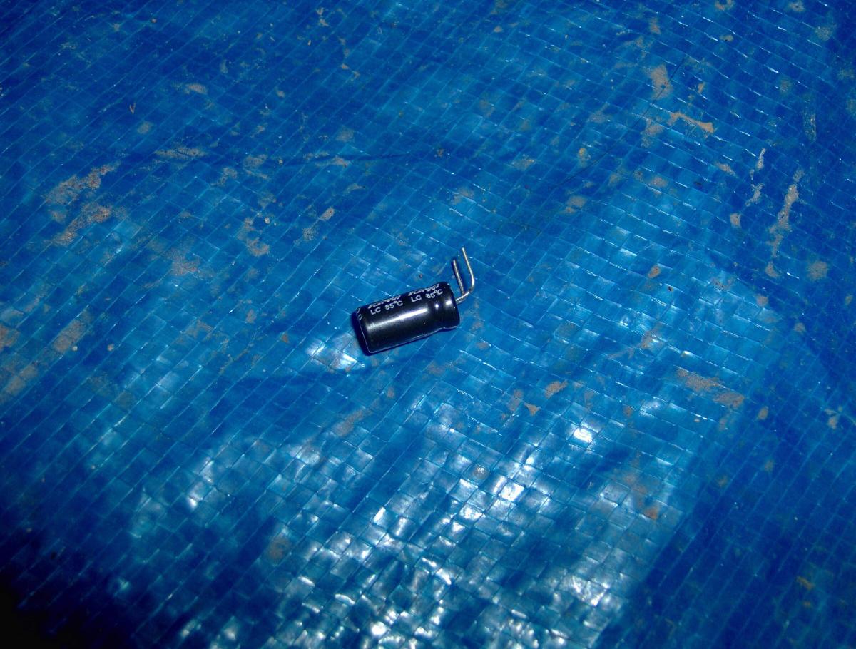 Der Kondensator mit 100µF. Die Kontakte habe ich umgebogen, wird später verständlich.