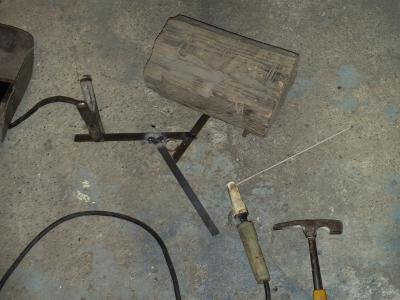 Hier die rostigen Stahlstangen vom Schrottplatz. Aus der oberen (2cm breit) entsteht die Kugellagerhalterung.