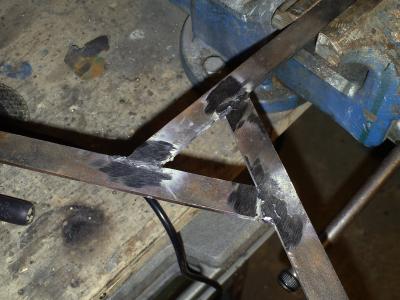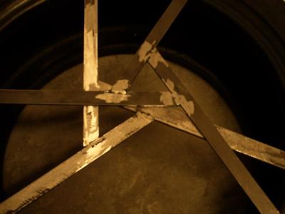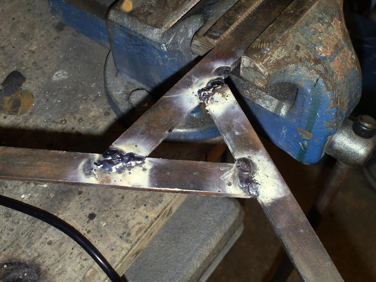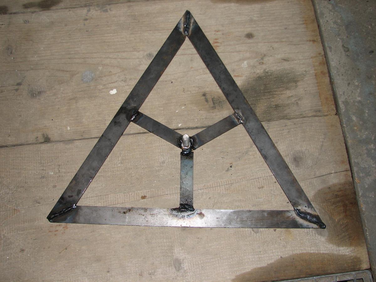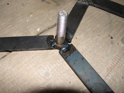 Im Mittelpunkt ist die Gewindeschraube festgeschweißt. Die Schweißnähte wurden selbstverständlich noch schöngeflext