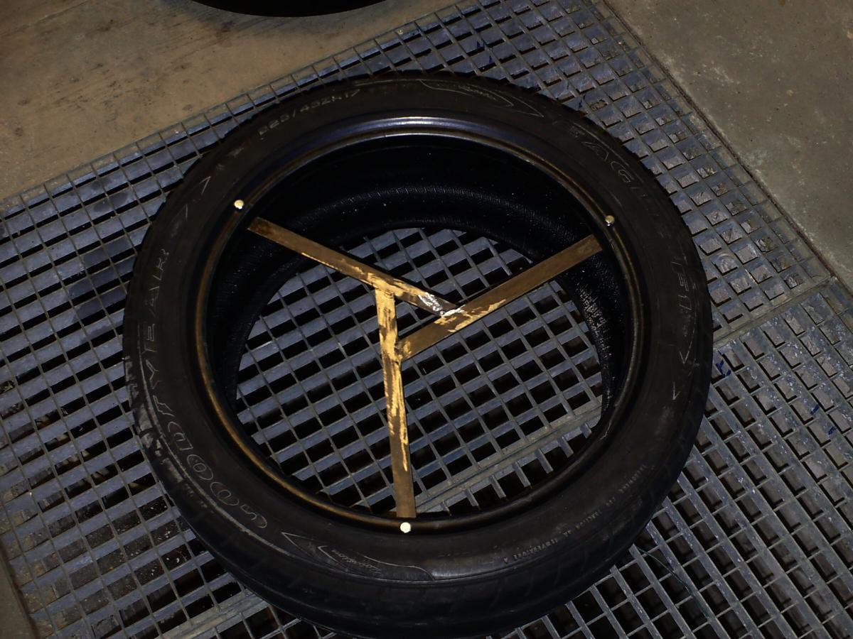 Nach unzähligen Gedankengängen sollte nun ein alter Auto-Reifen dran glauben müssen.
