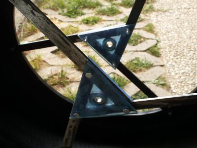 Die Kugellager sollten von jeweils zwei optisch ansprechenden Konstruktionen, aus im Dreieck angeordneten Stahlstangen, getragen werden.