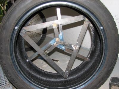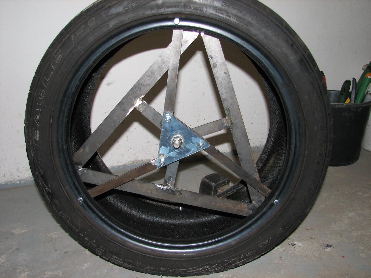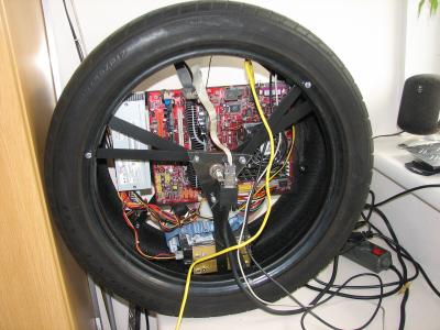 Die PC-Komponenten wie Mainboard, Festplatte, Netzteil etc. sollen nicht fest im Reifen angebracht werden, währe auch zu langweilig, sondern sich unabhängig von ihm im inneren drehen.