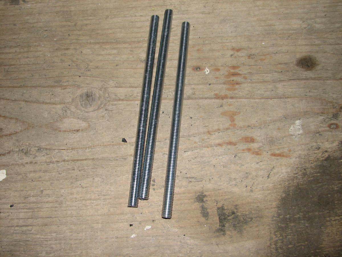 Nun fehlt noch das Gestänge auf der Vorderseite. Dazu hab ich drei Stahlstangen wie auch zuvor an eine Gewindeschraube geschweißt.