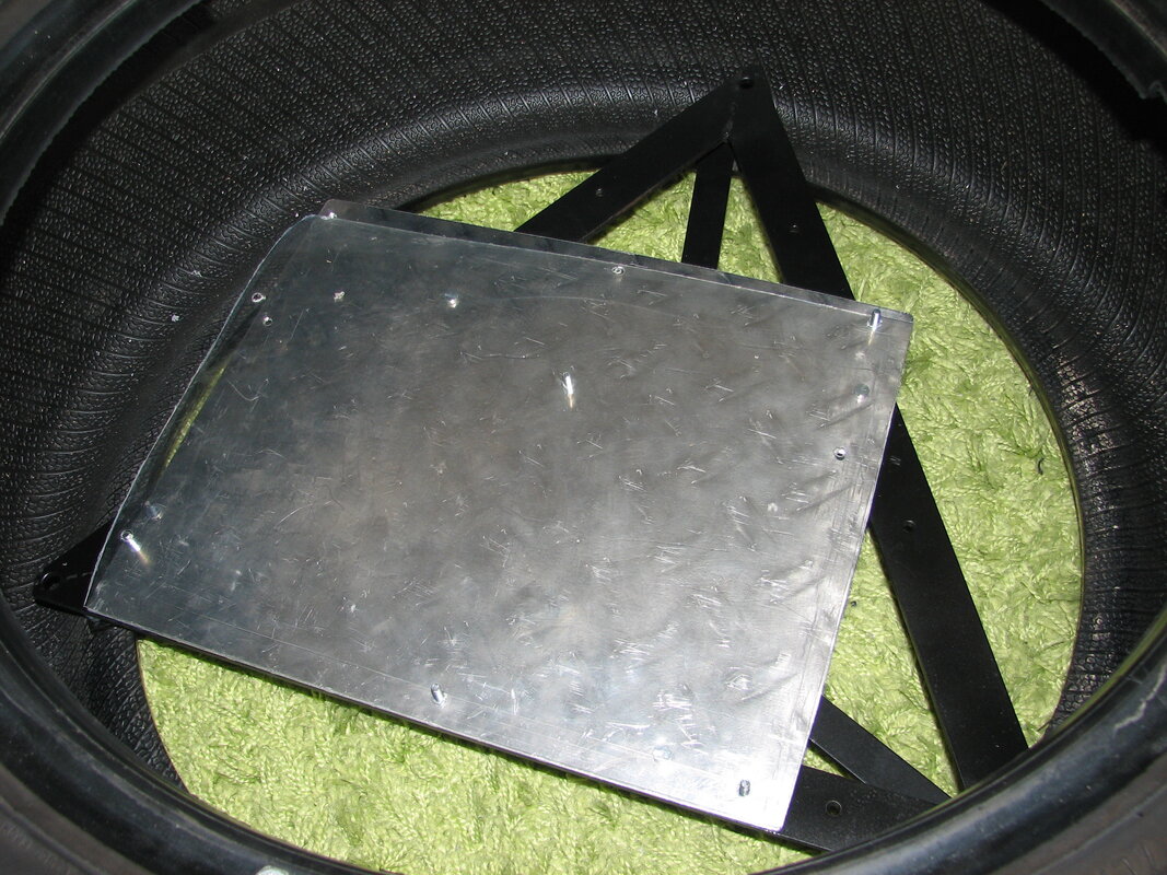 Zuerst wird das hintere Dreieck am Reifen festgeschraubt