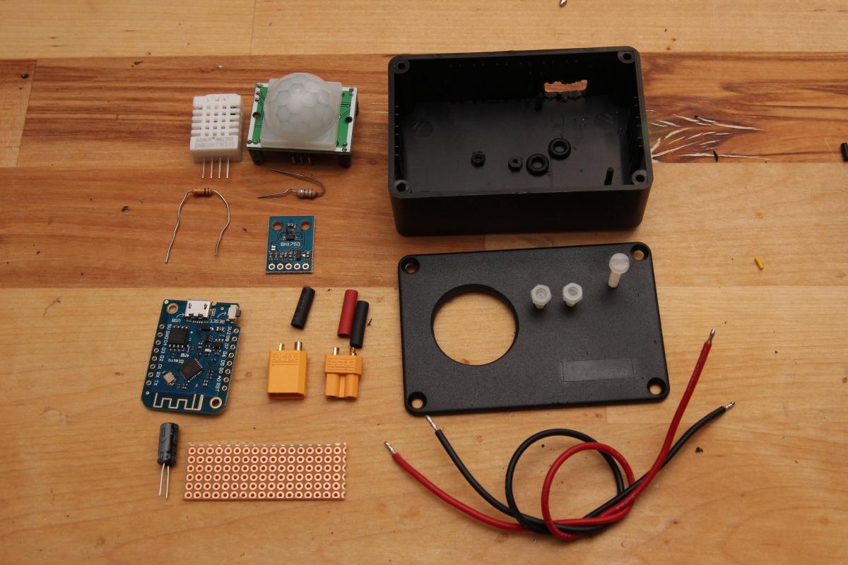 Die Hardware ist relativ simpel. Sensoren werden meist direkt mit dem ESP8266 verbunden. Die Lochrasterplatine dient hier nur als Powerdistribution für GND, 5V und 3.3V. Als Spannungsversorung dient meist ein USB Steckernetzteil. Bei vielen Geräten habe ich einen XT30 Stecker verwendet, da der Micro USB Anschluss zu flimsy schien.