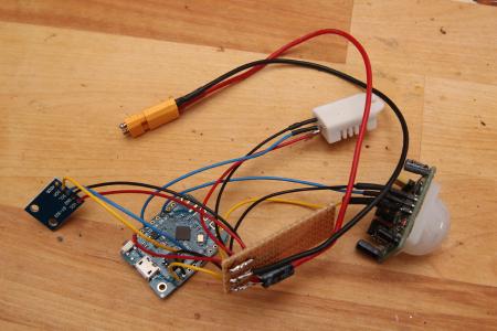 Hier ein kleineres Gerät mit BH1750 Luxmeter, AM2302 und Bewegungssensor.