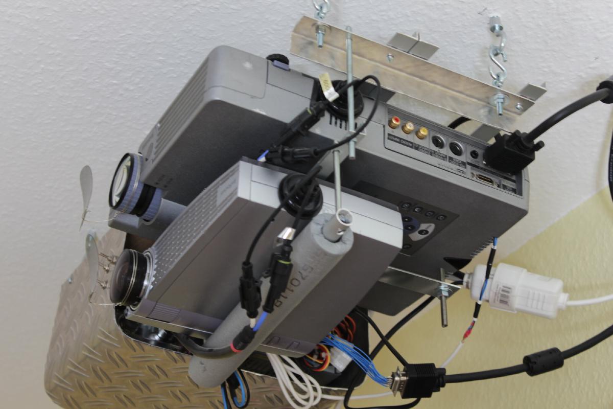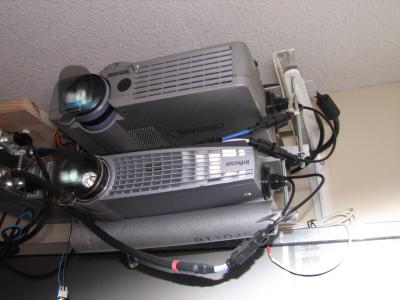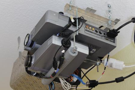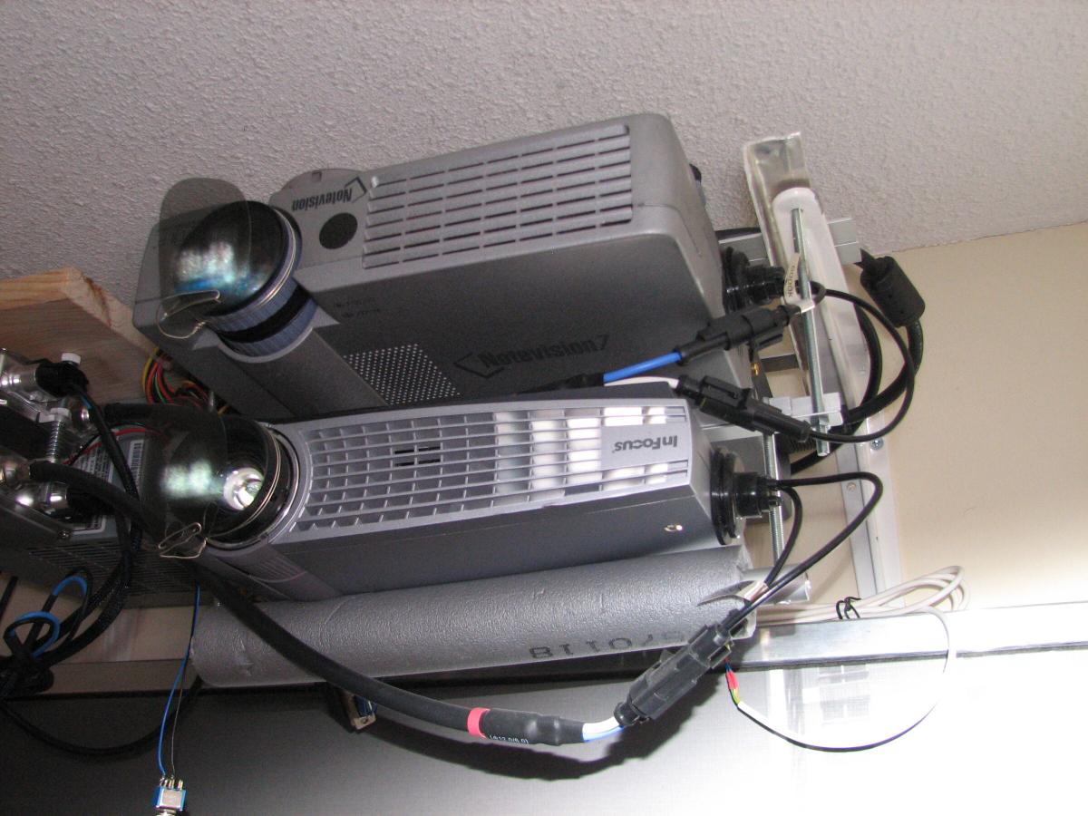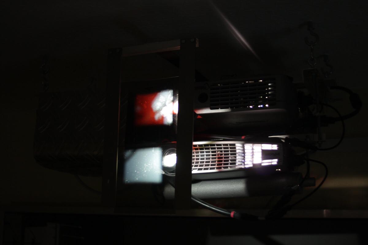 Hier die beiden untereinander befestigten Beamer.