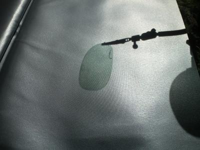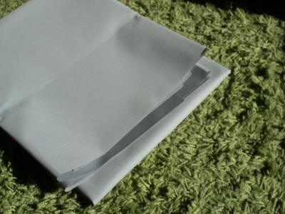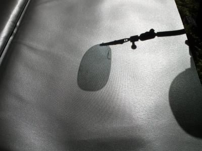 Dazu bestellte ich einen Sonnenschirmstoff (1,5m x 1,5m). Mit ein wenig Glück bestand die Beschichtung aus Metall.