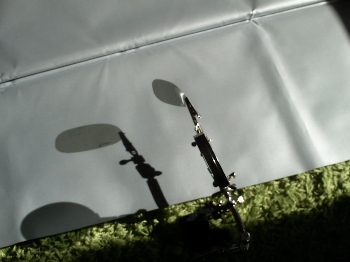 Ein Polfilter ist so über der Leinwand befestigt, dass er einen Schatten darauf wirft.