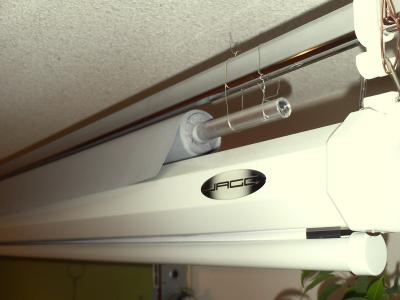 Das ganz erstmal mit etwas Draht über der normalen weißen Leinwand befestigt.