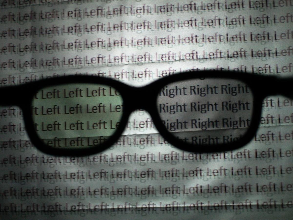 Blickt man durch das linke Brillenglas einer RealD Brille erkennt man, dass der Schatten heller erscheint.