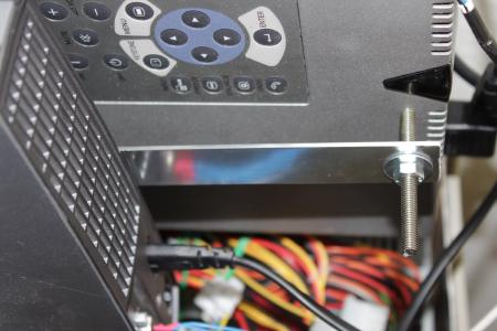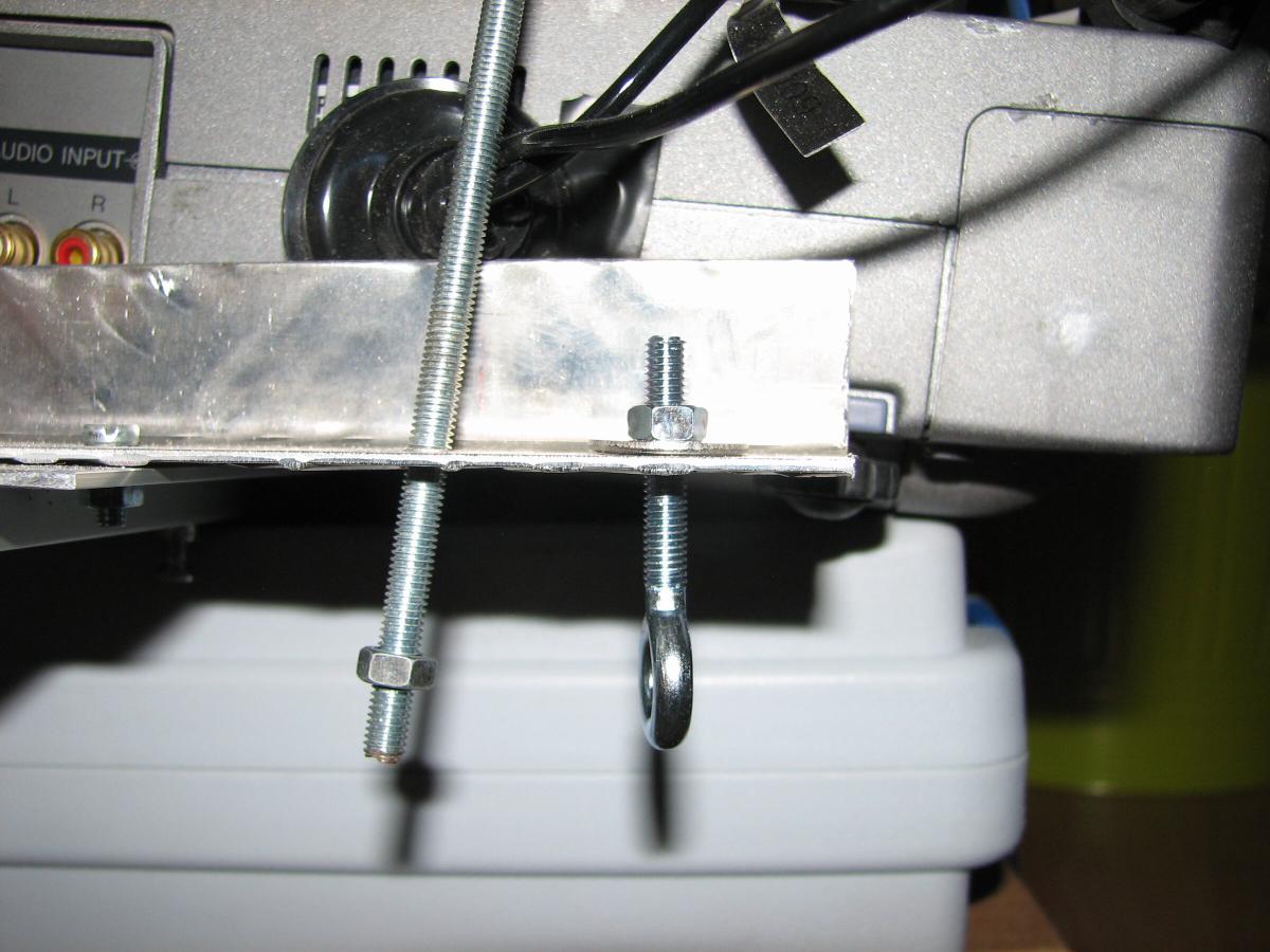 Mitte August 2012 hab ich dann ein Stück Alu mit einer Schraube zur Stabilisierung des unteren Beamers angebracht.