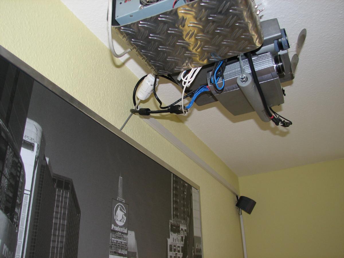 Den Beamer hab ich dann weiter nach vorne geschoben, sodass er etwas vorne runterkippt um ihn dann über die Schraube einzustellen.