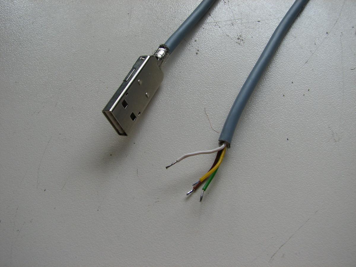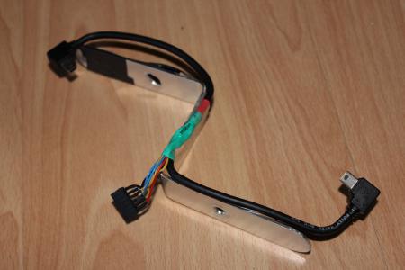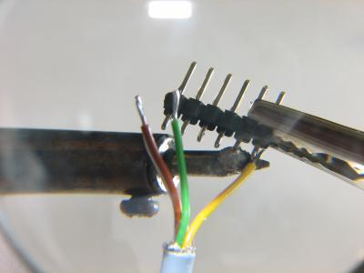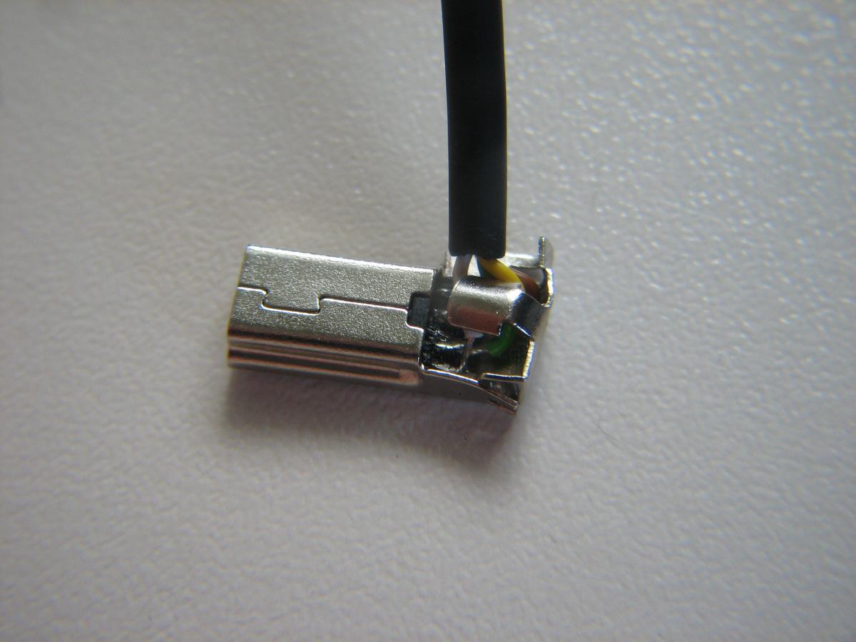 An die mini-USB Stecker dann jeweils ein kurzes 4 Adriges Kabel angelötet und das Ende irgendwie auf 90° gebogen