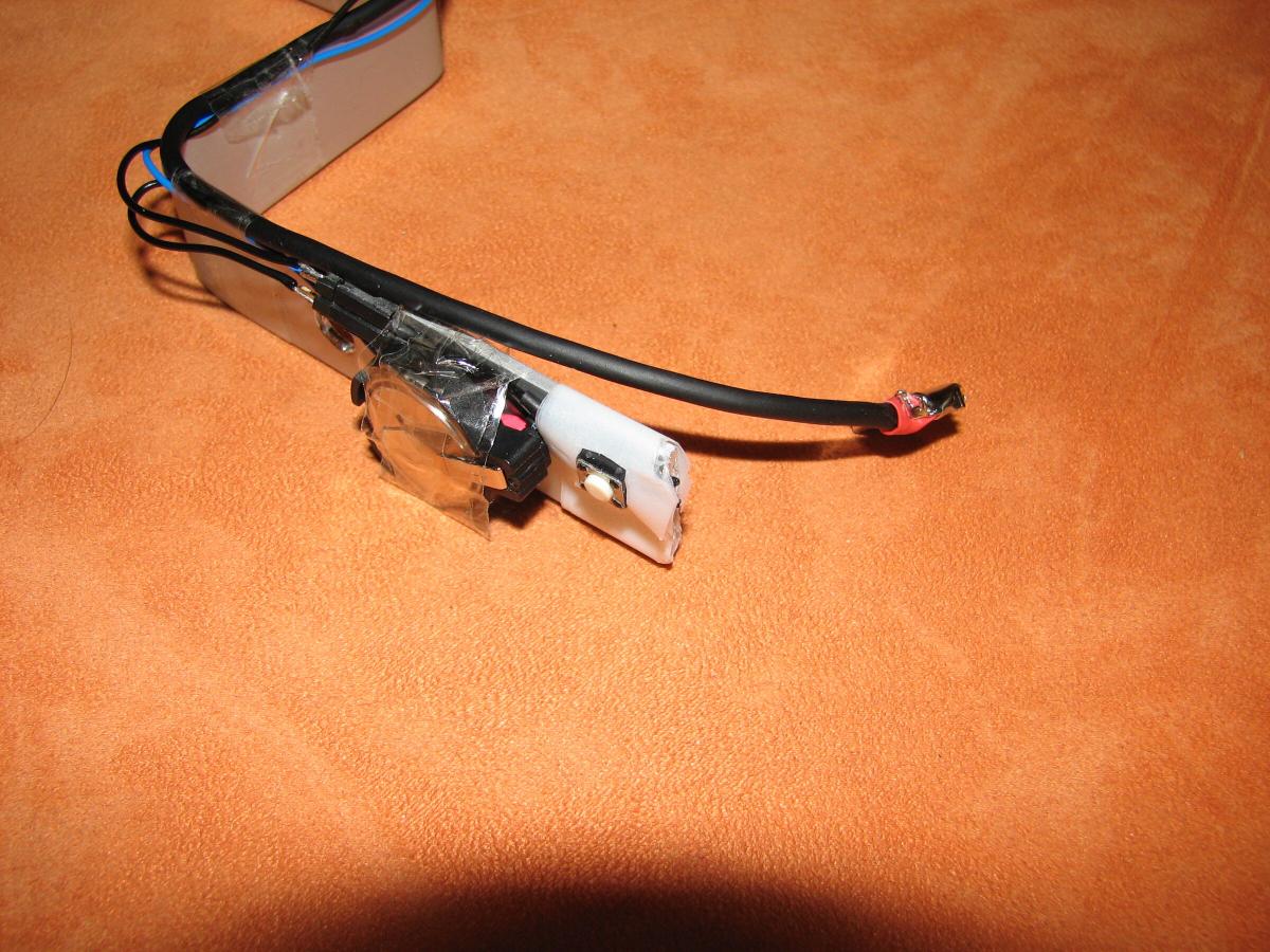 Zusätzlich wird die Signalspannung von ~5V durch drücken des Tasters von ein paar Knopfzellen am USB angelegt. Hier hab ich drei 1.5V Knopfzellen in reihe verlötet und eingeschrumpft. Später bin ich allerdings wieder zu zwei 3V Zellen gewechselt, da die Spannung recht früh unter dem nötigen Pegel lag.