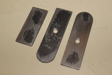 Bestehend aus drei 25mm breiten Flachstahl Teilen mit 62mm und 2x 90mm Länge kamen diese mir zuerst recht schwer vor, wesshalb ich ein paar Löcher in die äußeren Enden gebohrt hab. Viel hats am Ende nicht geholfen, sieht aber trotzdem nicht übel aus.