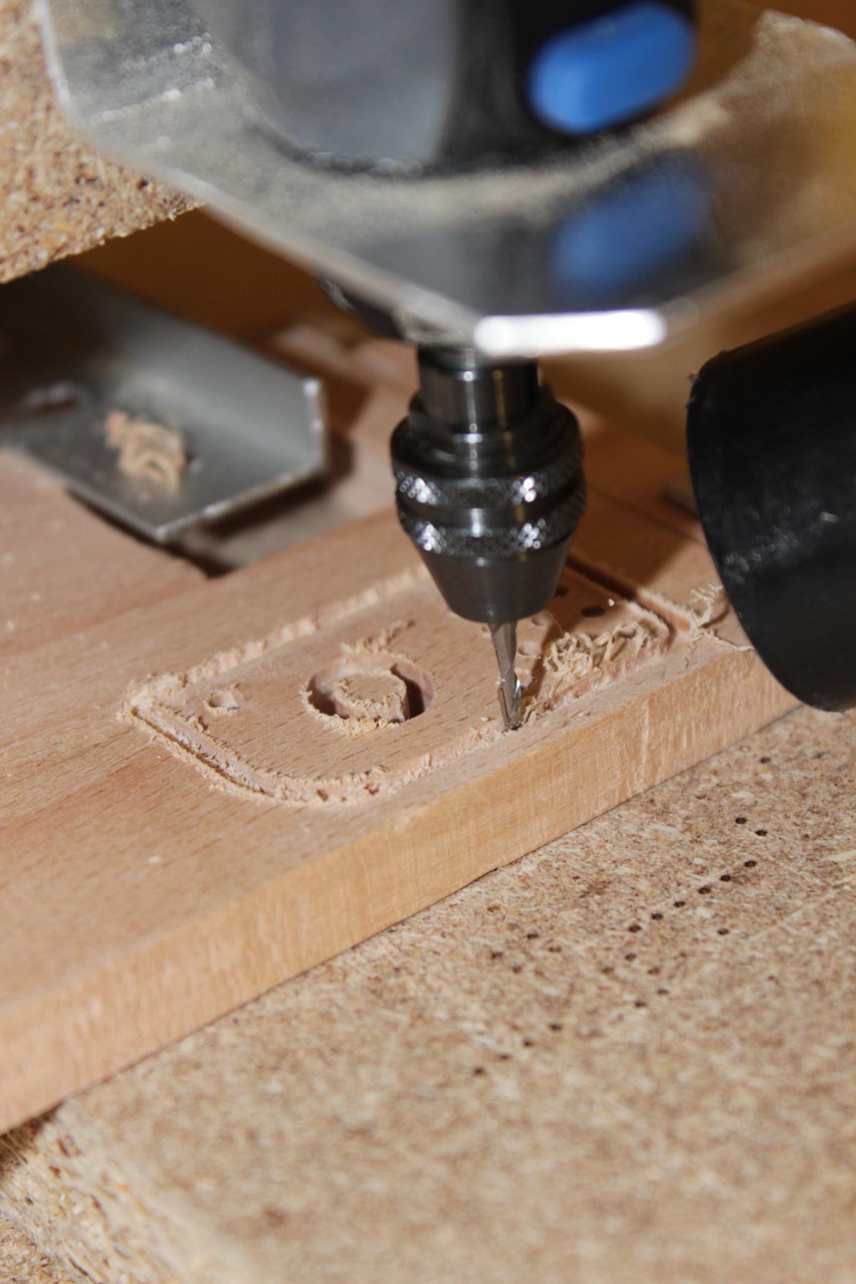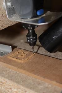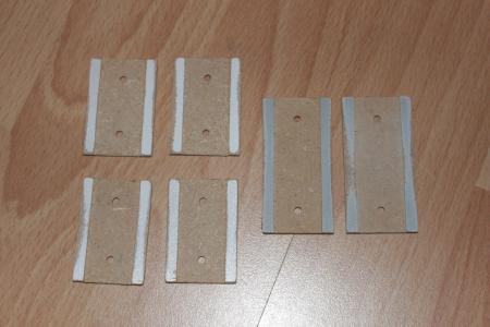 Um die Aluarme nicht direkt an den Centerplates anschrauben zu müssen hab ich insgesamt sechs kleine Plättchen aus Hartfaser (jaja schonwieder, aber es lässt sich so gut verarbeiten) gefräst.