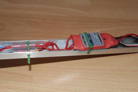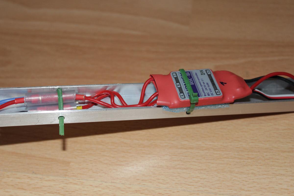 Alle Kabel der ESC’s und des Servos werden nun zwischen die Centerplates geführt.
