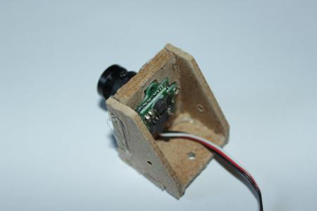Da ich noch eine Canon A810 rumliegen hatte musste ich nurnoch eine simple Befestigung aus einem Holzstück (3mm dicke Hartfaserplatte) mit ein paar Löchern an der richtigen Stelle bauen.