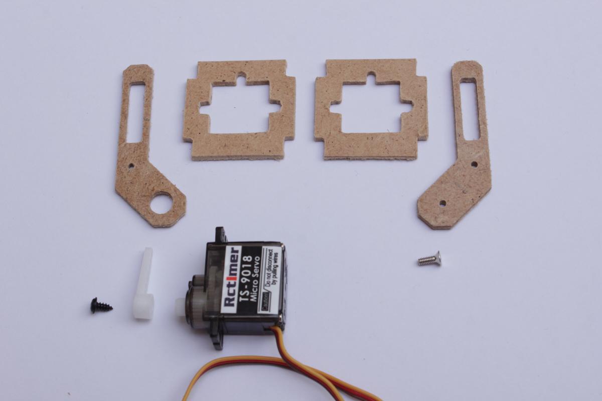Nachdem die Teile mit Heissklebe zusammengeklebt und schwarz angesprüht wurden konnte der Servo dazwischengesteckt und angeschraubt werden.