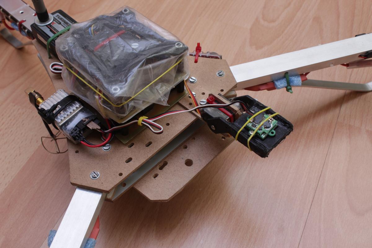 Der erste Testflug im Garten verlief unerwartet gut; Copter fliegt nicht wesentlich schlechter und vorallem: auf den ersten Blick keine erkennbaren Vibrationen und das ohne jegliche Dämpfung.