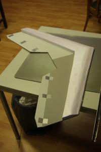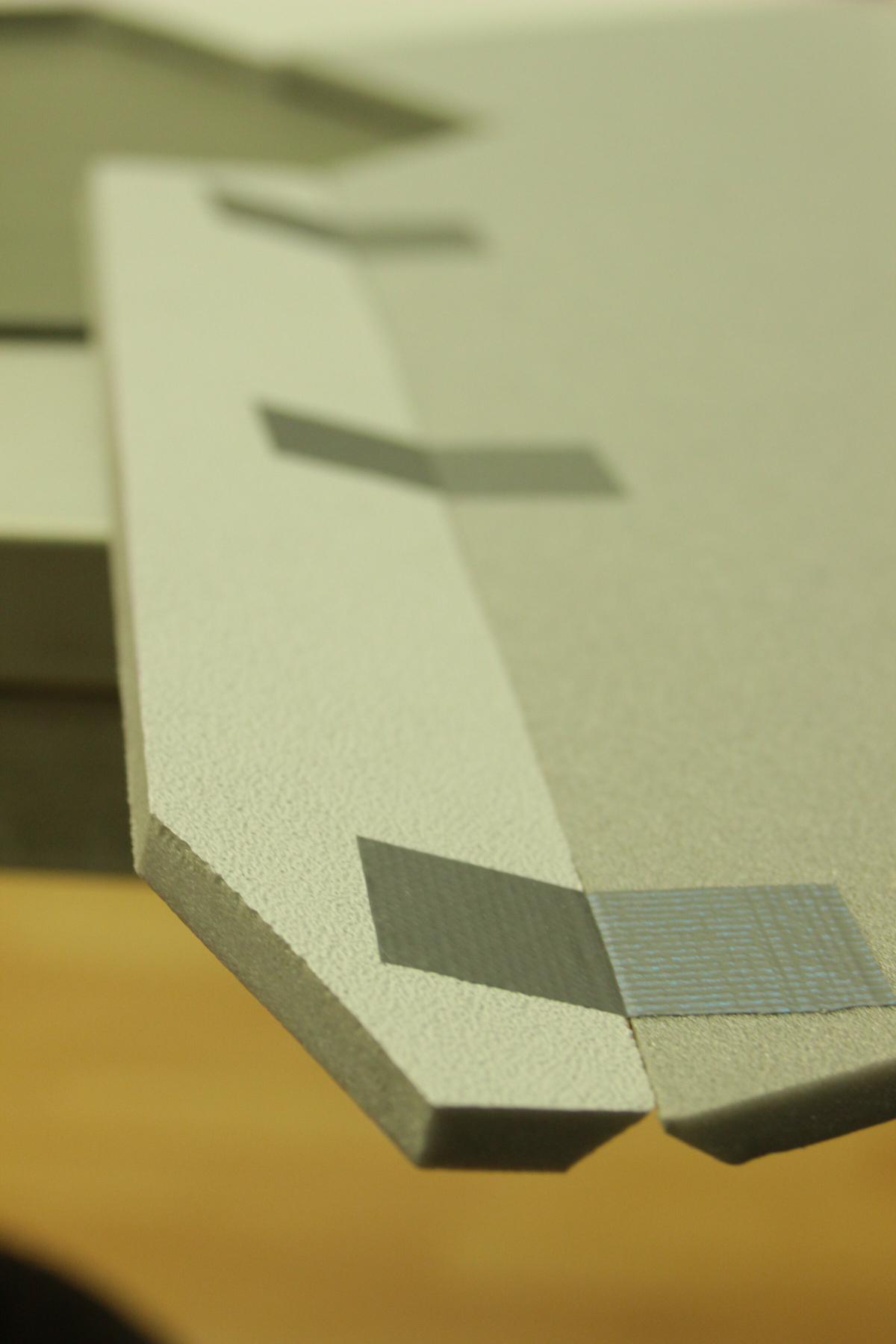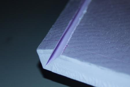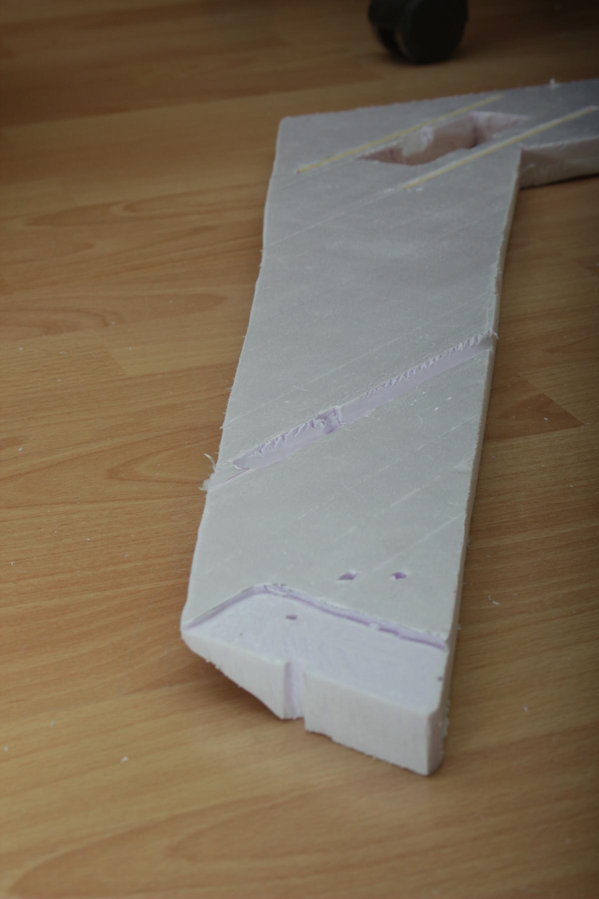 Das Domodur kommt auf das Saarpor und bildet die Tragfläche. Die Vorderkante hab ich mit einem Messer und Schleifpapier aus nicht nur optischen Gründen abgeschrägt.