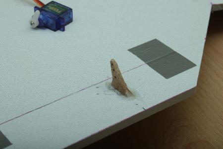 Die Servos wollte ich eigendlich zuerst in dem Domodur einlassen, allerdings währen mir dann die Stangen zu den Elevons zu lang geworden.