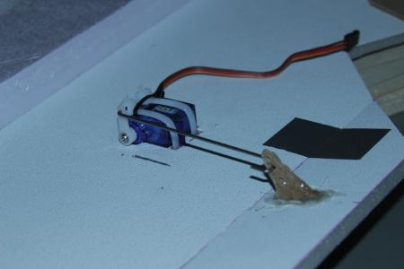 Servos wieder drauf. Diesmal musste ich sie mit etwas doppelseitigem Klebeband zusätzlich sichern.