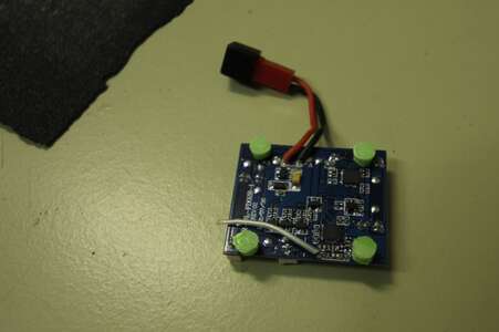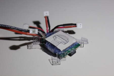 Beleuchtung und Motoren wieder zusammenstecken, fliegt wieder. Er wiegt so wie er da Steht (ohne Akku) 86 Gramm. Schwebt bei Halbgas, also alles im Grünen bereich.