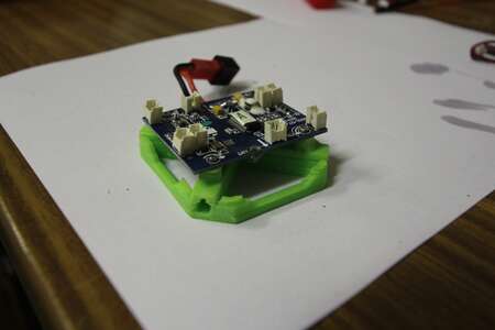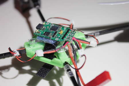Zuerst hatte ich das Micro MW Board direkt auf der gedruckten Centerplate aufgeschraubt (wie auch zuvor das Originalboard). Nach ein paar Flügen bemerkte ich aber, dass das Acc stark driftete (nachzuverfolgen in der GUI mit festgehaltenem Copter ab Halbgas). Da sich der Horizont somit um bis zu 20° innerhalb einiger Sekunden drehte ist der Quad mir zuvor mehrmals im Angle oder Horizon Mode gegen die Wand gebrettert.
