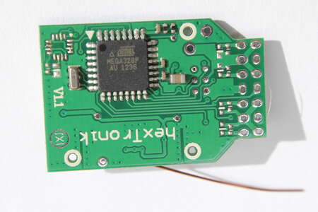 Da aber ein paar Pins des Atmega 328P auf der Unterseite nicht verbunden sind (darunter Pin 24 PC1 (ADC1), entsprechend A1 bei Arduino; vgl. Datenblatt des Atmega328P und Schaltplan des Arduino Pro Mini) kann dieser zur Spannungsmessung verwendet werden.