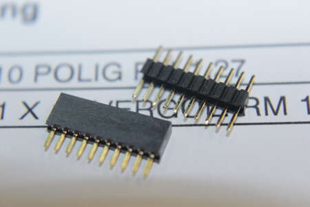 Das RM stimmt zwar nicht ganz mit dem auf der Platine überein (ist warscheinlich eher 1mm), passt bei nur vier Kontakten aber trotzdem. Zusätzlich hab ich das Teil von unten mit etwas Kleber fixiert da ich nicht möchte, dass sich die Leiterbahnen von der Platine lösen falls die Buchsenleiste mal abreisst.