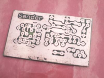 - Toner auf der Platine mit etwas Aceton entfernen