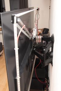 Eine Direktbefestigung durch Aufkleben am Gehäuse des Smart-TV war einerseits wegen des sehr dünnen Profils im oberen Bereich unpraktisch, auch aber wegen dem sonst eher großem Abstand zur Wand.