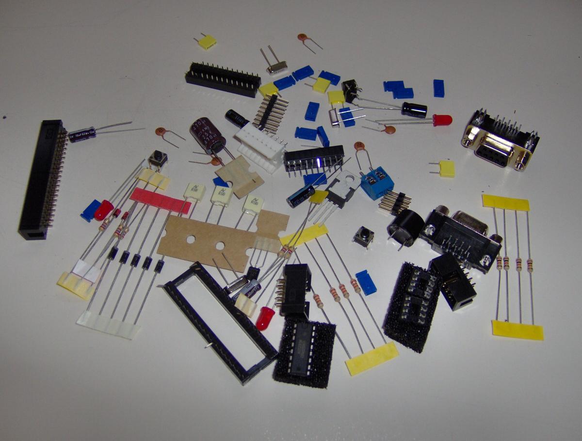 Dann die etwas größeren Bauteile, wie Kondensatoren, Dioden und IC-Sockel