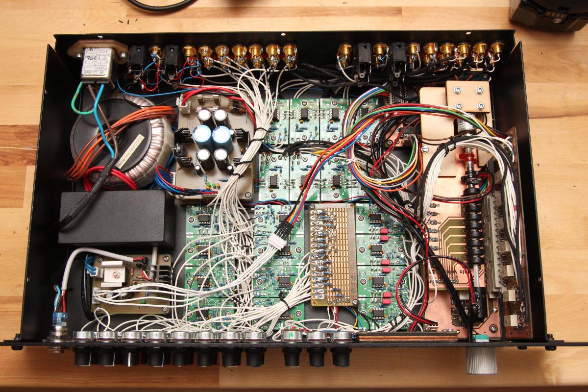 Welcher Eingang auf welche Gruppe(n) gemappt ist und zu welchen Gruppen die Ausgänge geschaltet werden können ist durch Umlöten von Widerständen bzw Kabeln nachträglich möglich. Letzteres bekommt sogar eine Wartungsöffnung.