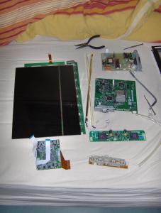 Hier die ausgebauten Teile. Hintergrundbeleuchtung wird später nicht mehr gebraucht.