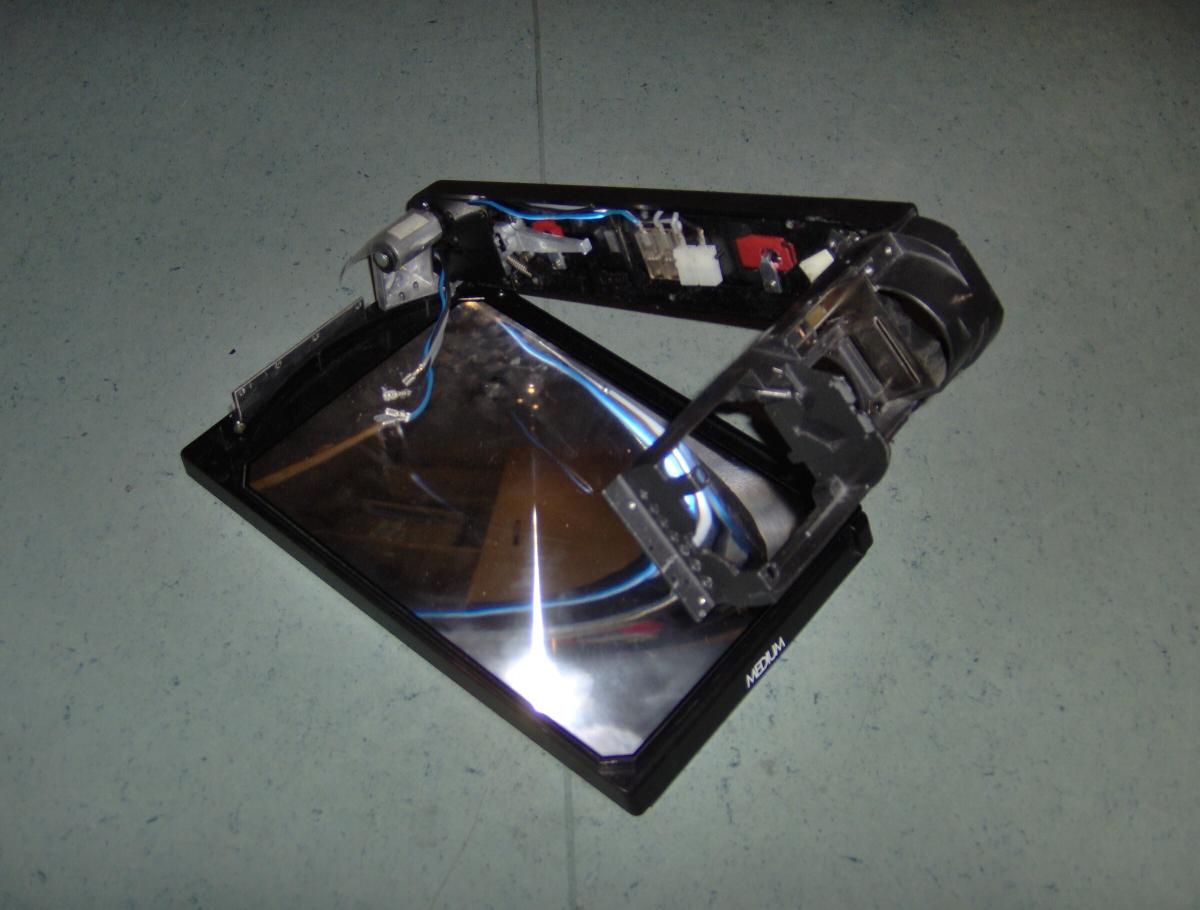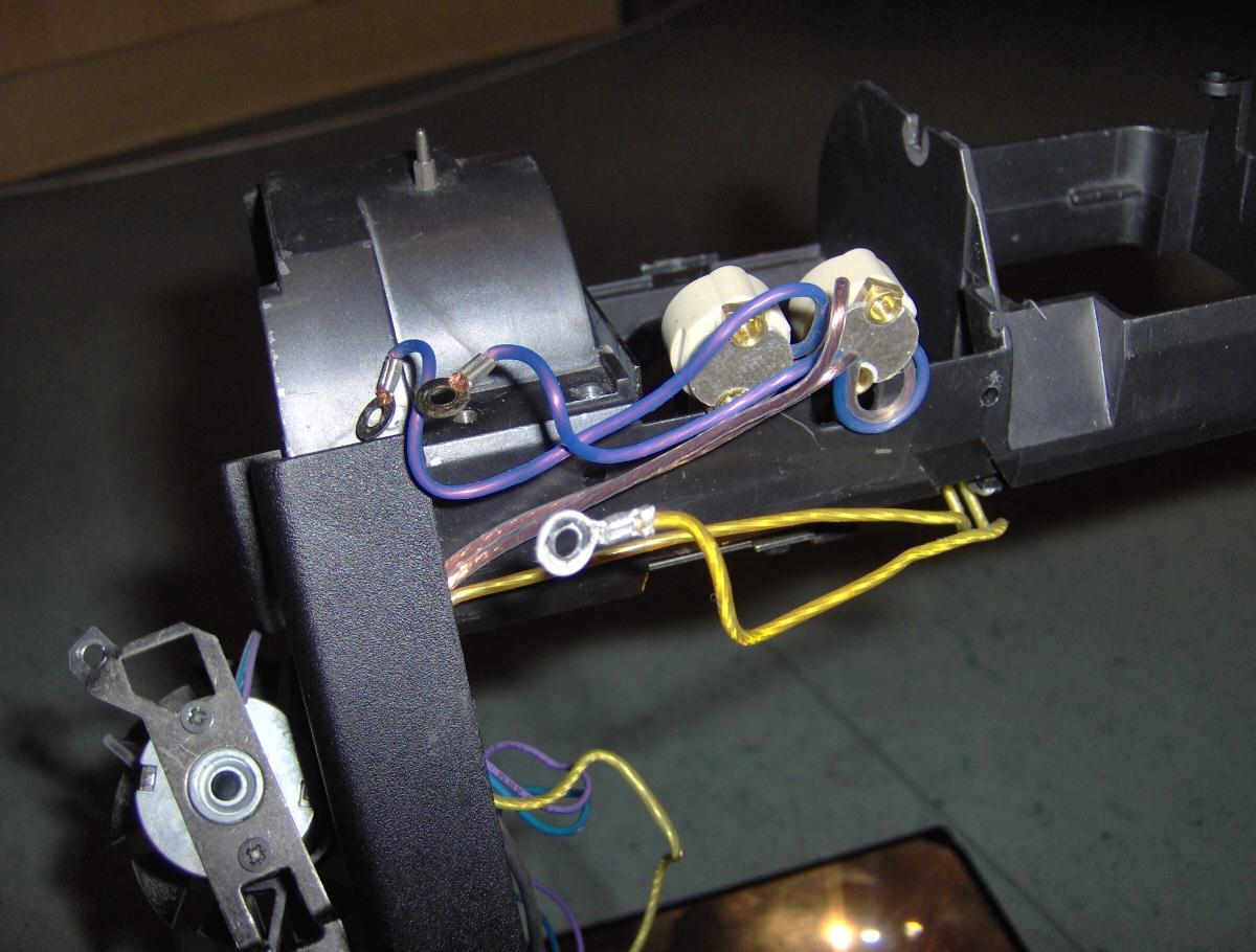 Der Arm des OHP´s. Die Kabel werden abgesteckt und die Verbindungen gut gemerkt.