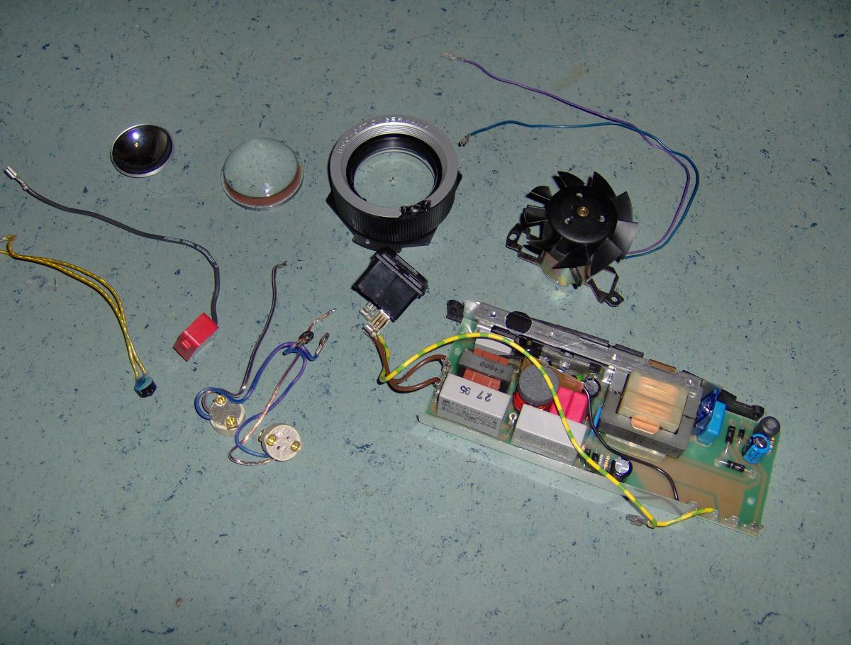 Im Projektor befanden sich zwei Halogen Lampen, eine in Betrieb, die 2. als Ersatz: