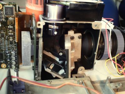 So konnte ich nun meinen ersten Blick in das innere eines DLP-Beamers werfen.