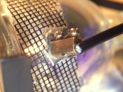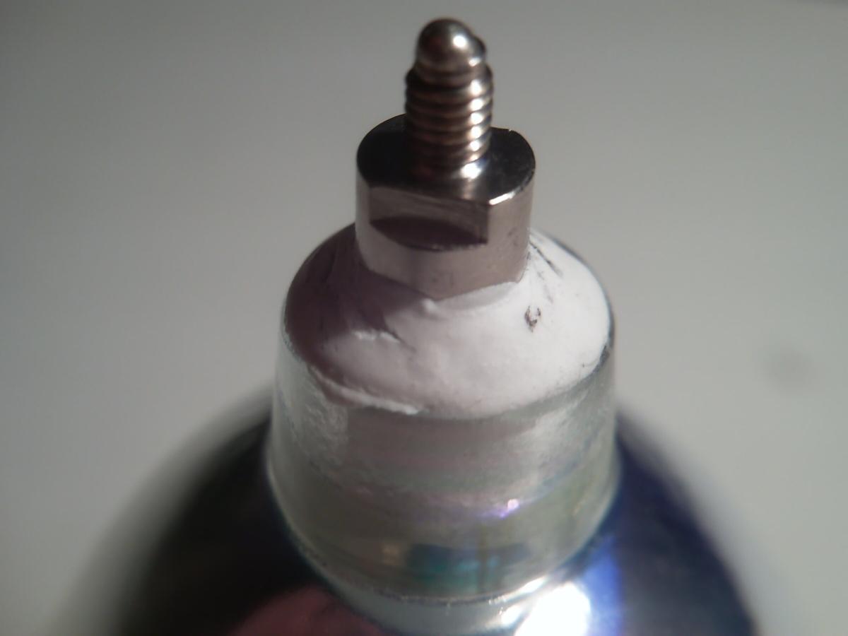 Damit der Brenner in den Reflektor eingebaut werden kann, mußte der Draht an der Seite abgeknipst ..