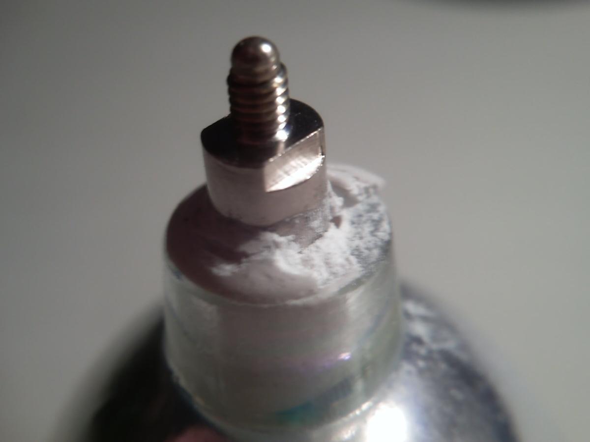 Der Gips, der die Lampe hält, muß sorgfältig z.B. mit einem Schraubenzieher abgekratzt werden.