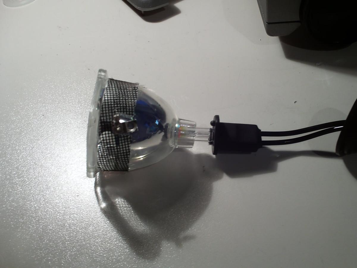Dabei wird ein Handelsüblicher Beamer, meist mit defekter Lampe (neukosten über 100€) oder einem defekten EVG (Elektronisches Vorschaltgerät), auf ein Kostengünstigeres Leuchtmittel umgerüstet.